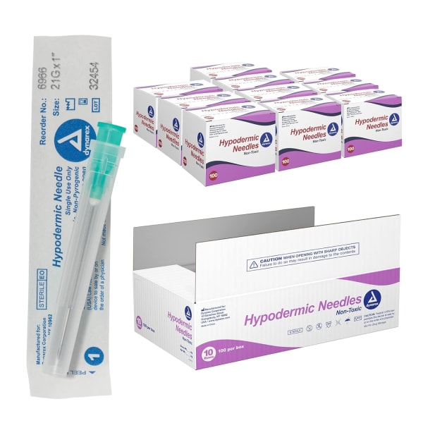 Hypodermic Needle – Dynarex 6966 (21G × 1″) – Box of 100