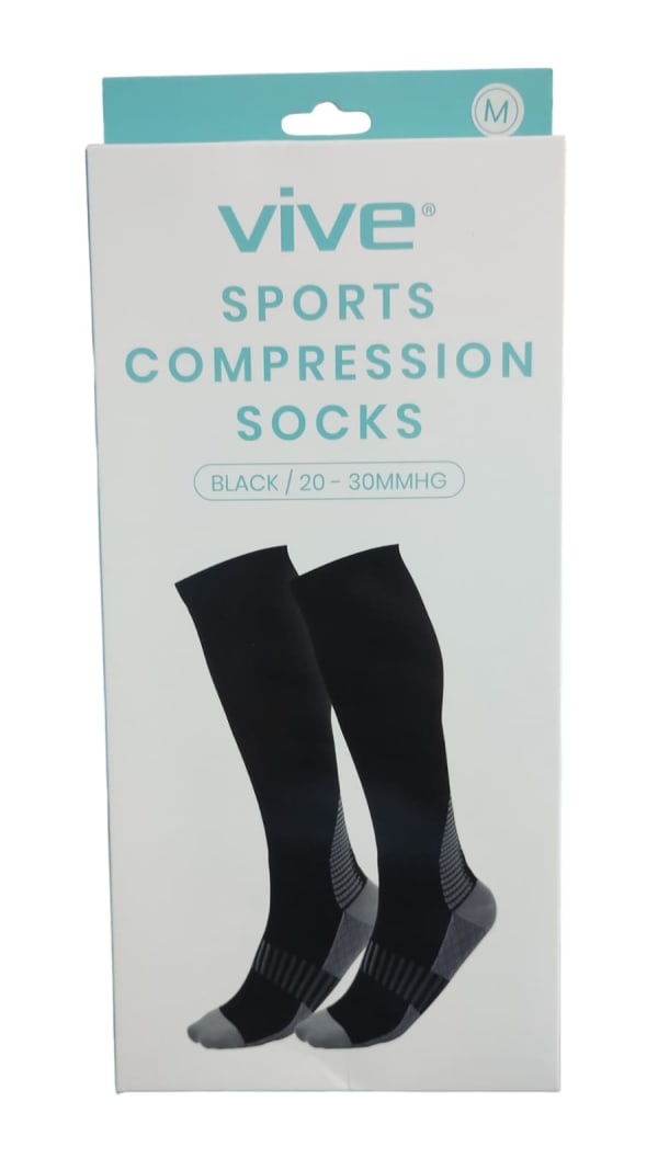 Compression Socks VIVE HEALTH-SUP3012BLKM Knee, Medium Regular-Pair compression range of 20-30MMHG