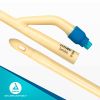 Indwelling Foley urinary catheter with retention balloon (5–10 cc), designed for continuous bladder drainage.