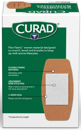 - CURAD Flex-Fabric bandages are made of woven fabric designed to stretch, bend, breathe and stay on comfortably, even when wet
