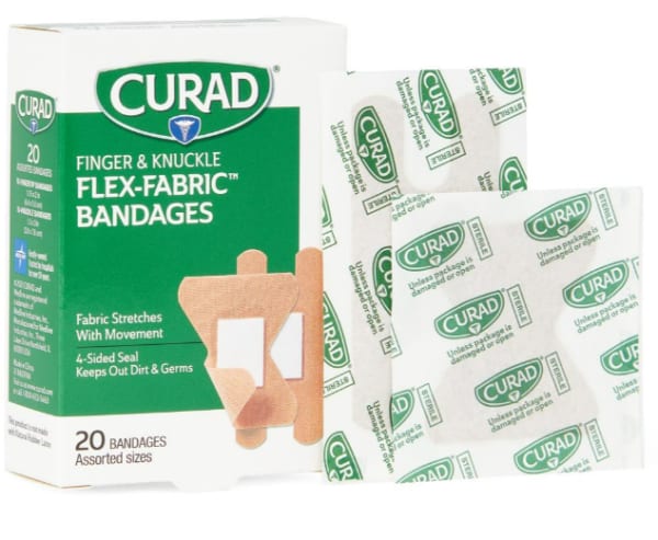 - CURAD Flex-Fabric bandages are made of woven fabric designed to stretch, bend, breathe and stay on comfortably, even when wet