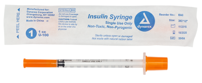 Syringe Insulin – Dynarex 6948 (1cc, 30G × ½″) – Sterile Single-Use