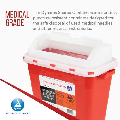 The DYNAREX 4628 Sharps Container meets OSHA and FDA requirements for safe sharps disposal. Its puncture-resistant construction and locking lid design protect healthcare personnel from exposure to contaminated sharps, supporting safe medical waste management across Belize.